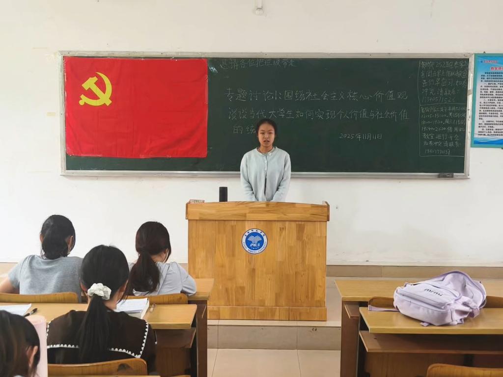 讨论课上,学员们围绕主题依次上台发言。大家结合自身经历,从不同角度探讨了如何实现个人价值与社会价值的统一。学员们一致认为,作为新时代青年,个人成长成才必须紧密对接国家战略和社会需求,在专业领域精耕细作,持续提升服务社会的核心能力,践行“敬业”精神、实现个人价值与社会价值同频共振。同时,积极投身志愿服务、社区建设、大学生支教、乡村振兴实践等社会活动,在奉献中诠释“友善”与“诚信”的深刻内涵,实现自我提升。更有学员聚焦智慧农业等国家未来发展关键领域,坚定表达了投身国家急需领域建功立业的决心,展现出将个人理想融入国家发展大局的青春担当。