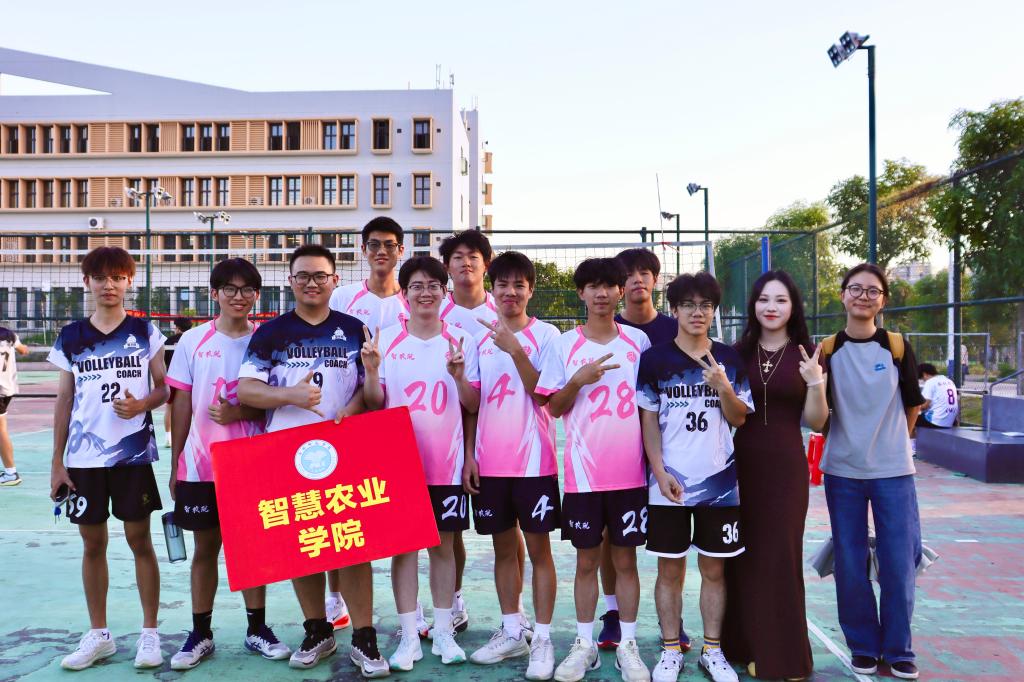 赛前,我院男排热身节奏紧凑,弓步压腿、转动脚踝,动作舒展到位。随着哨声落下,我院男排迅速进入状态,队长发球精准破局。面对对手反扑,队员们垫传灵动、扣杀迅猛,拦网坚不可摧。场边助威声浪迭起,“智农加油”的呐喊与掌声交织,化作队员不竭动力。
