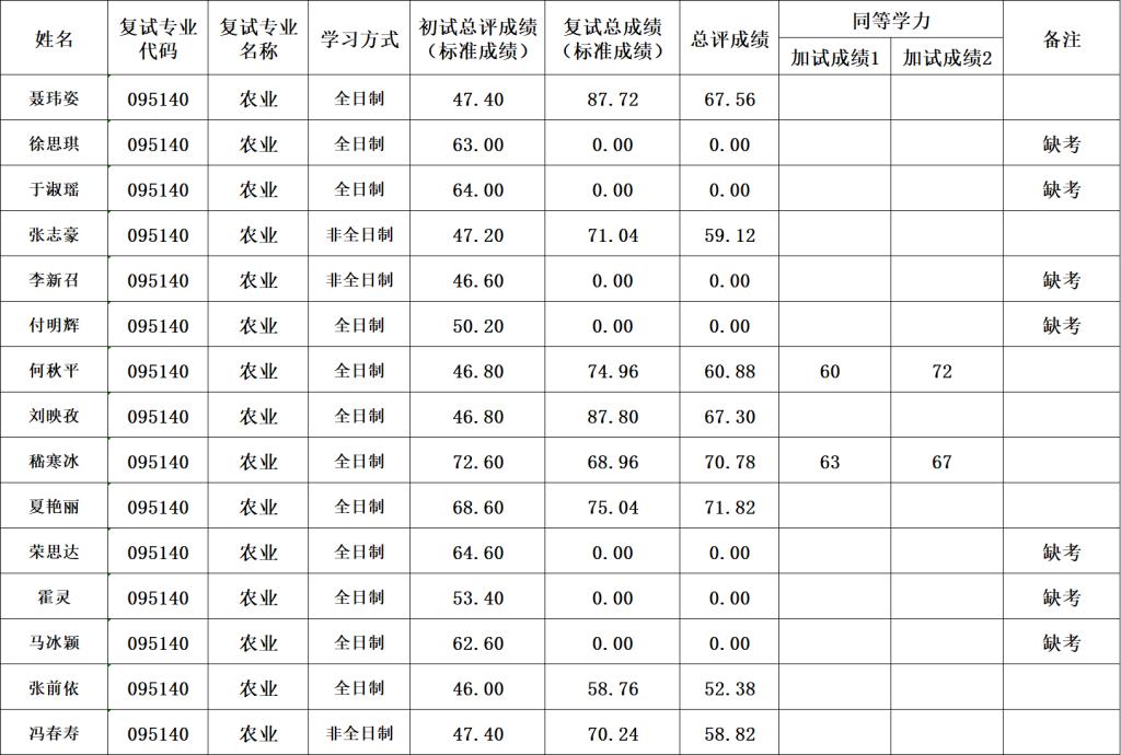 玉林师范学院智慧农业学院2026年农业(园艺)(095140)专业硕士调剂复试已结束,现将调剂复试成绩公示如下: