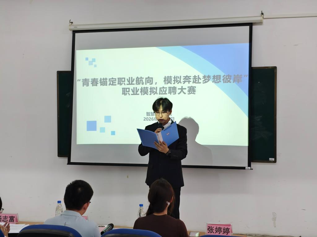 4月14日下午,我院于我校东校区旧行政楼201会议室举行2026年职业模拟应聘大赛选拔赛。此次比赛由我院辅导员陈坤铨及学生会主席团部分成员组成评委团,本次比赛共有17名选手参赛。